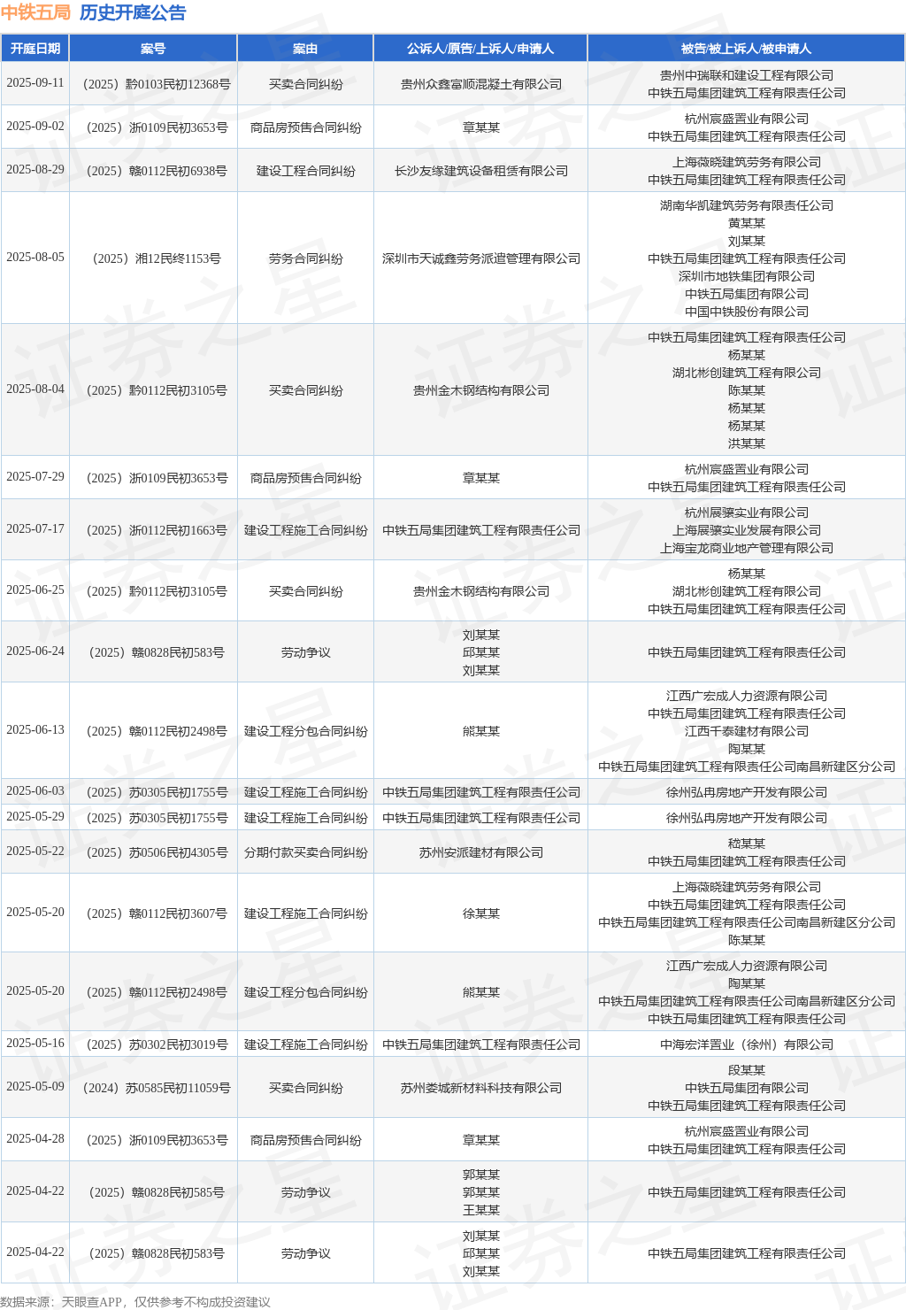 本站消息,根据天眼查APP显示,近日公布了一则中铁五局集团建筑工程有限责任公司作为被告/被上诉人的开庭公告,详细内容如下: